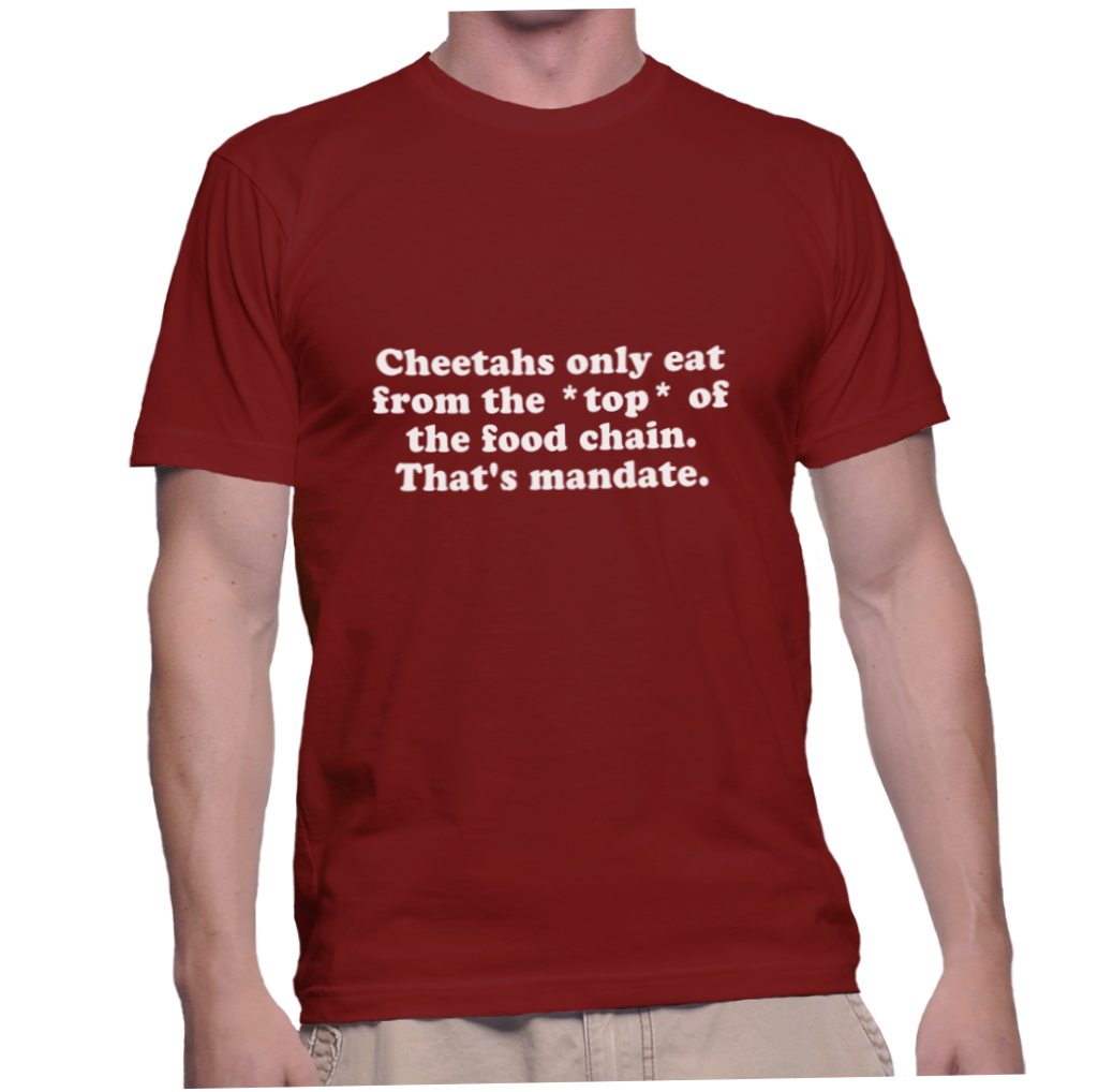/ Cheetahs only eat from the *top* of the food chain. That’s mandate.