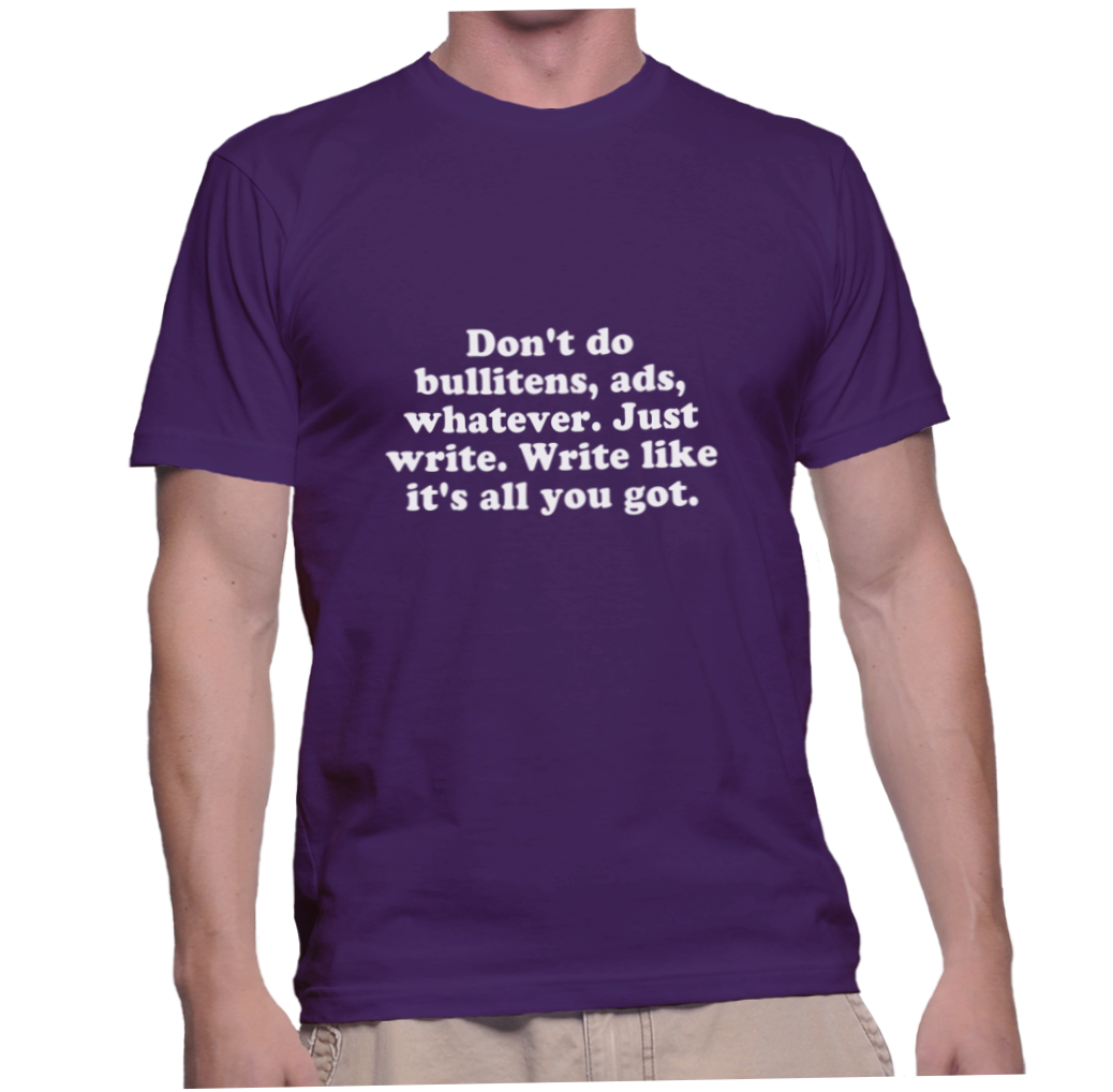 / Don’t do bullitens, ads, whatever. Just write. Write like it’s all you got.