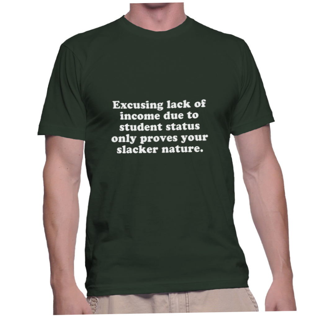 / Excusing lack of income due to student status only proves your slacker nature.
