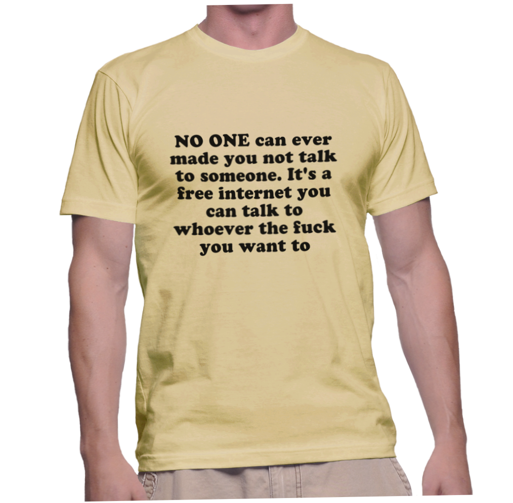 / NO ONE can ever made you not talk to someone. It’s a free internet you can talk to whoever the fuck you want to