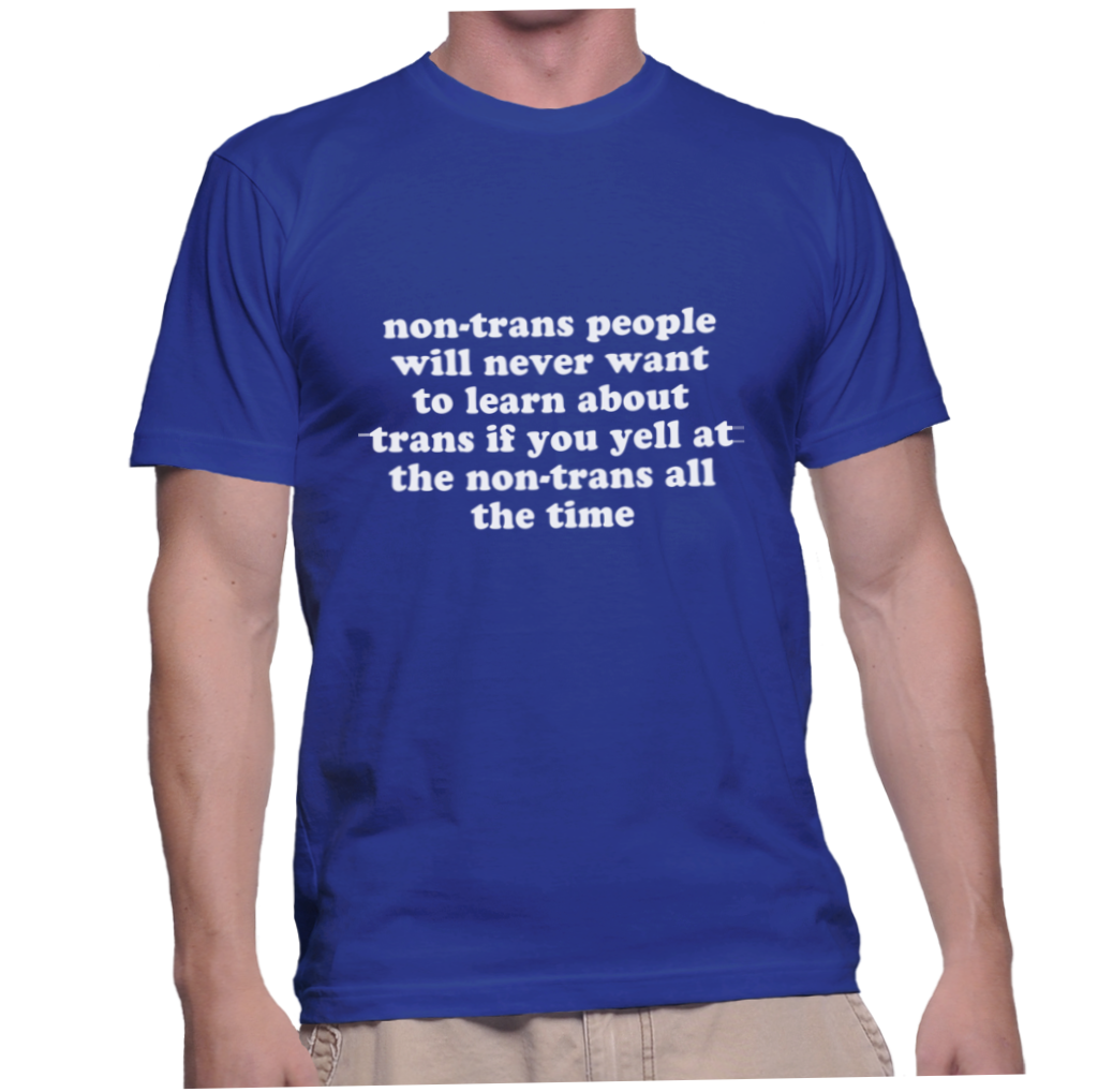 / non-trans people will never want to learn about trans if you yell at the non-trans all the time