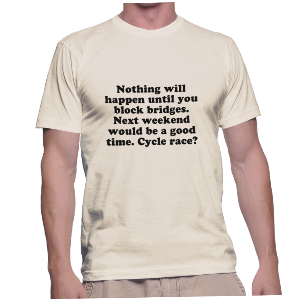 / Nothing will happen until you block bridges. Next weekend would be a good time. Cycle race?