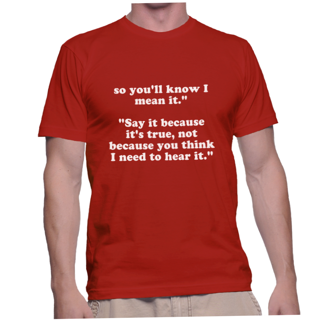 / so you’ll know I mean it.””Say it because it’s true, not because you think I need to hear it.”